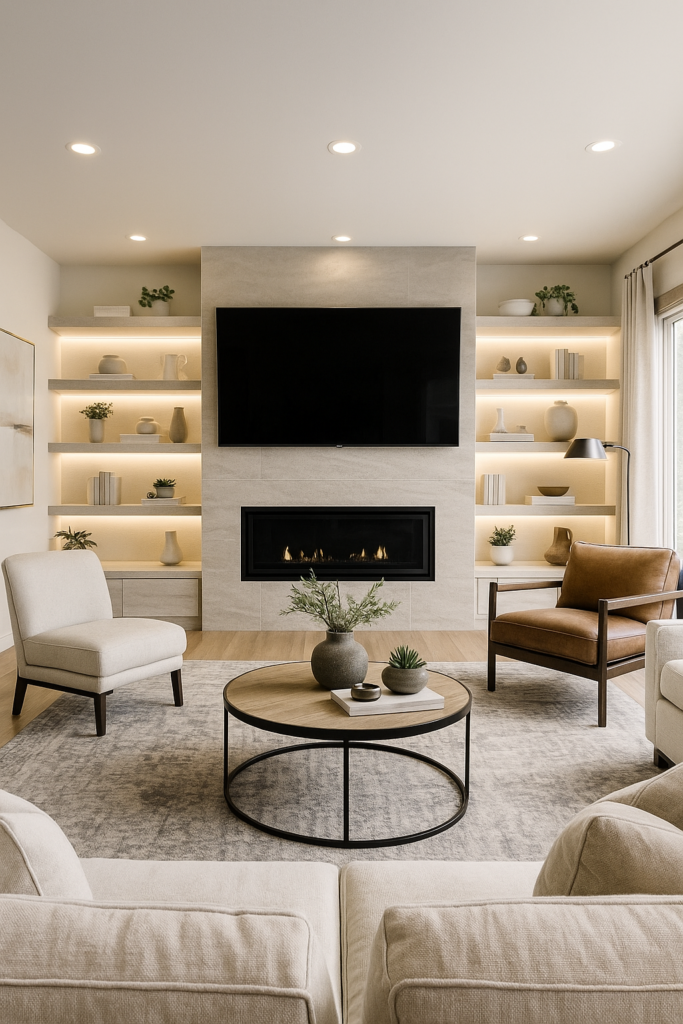 The original layout offered no intentional place to mount a TV. Any attempt to hang one above the old mantle would have resulted in awkward proportions, visible wiring, and a cluttered focal point.